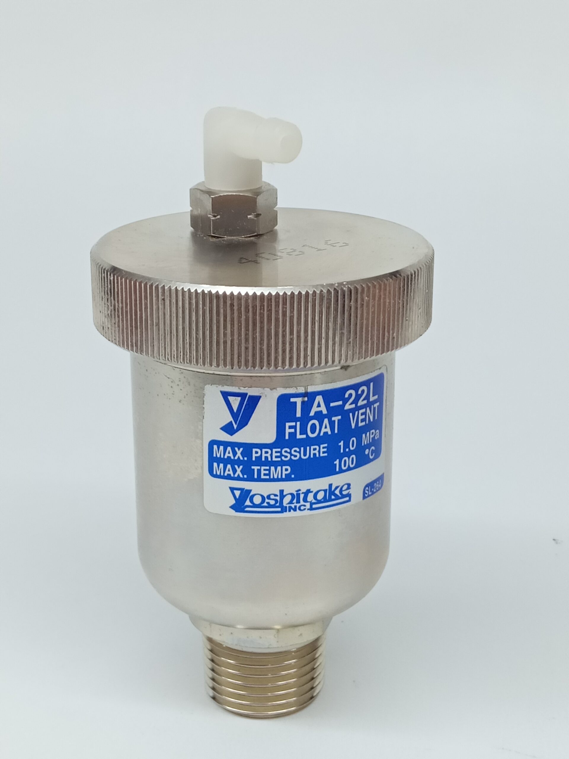 A boia de ventilação Yoshitake TA-22L é uma válvula automática projetada para remover o ar de tubulações de água fria e quente, prevenindo a perda de eficiência térmica, corrosão de equipamentos e ruído no sistema. O modelo “L” indica uma conexão tipo junta de mangueira para a saída.